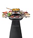 De barbecue heeft een massieve RVS grillplaat met een dikte van ca. 3,5 mm, die dankzij de buitenafmetingen van ca. 70 x 70 cm een zeer royaal grill-oppervlak biedt. Bovendien kan een extra grill-rooster (beide meegeleverd) worden gebruikt in de centrale uitsparing van de grillplaat op een frame. De veelzijdigheid van de barbecue wordt verder vergroot door de meegeleverde 5-delige accessoir-set bestaande uit een vlakverdeler, een rooster-heffer, een wokpan, gril-tang en een grill-spatel.