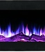 Kenmerken - LED-verlichting 3-kleuren (rood, blauw, paars) - Dimfunctie voor vlameffect - Met timerfunctie - Met thermostaatregeling - Voorkant van veiligheidsglas - Inclusief afstandsbediening - Afmetingen: ca. 105 x 32,5 x 12,5 cm - Vermogen: 900 / 1800 W.