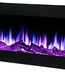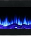 Kenmerken - LED-verlichting 3-kleuren (rood, blauw, paars) - Dimfunctie voor vlameffect - Met timerfunctie - Met thermostaatregeling - Voorkant van veiligheidsglas - Inclusief afstandsbediening - Afmetingen: ca. 110 x 35 x 12,5 cm - Vermogen: 900 / 1800 W.